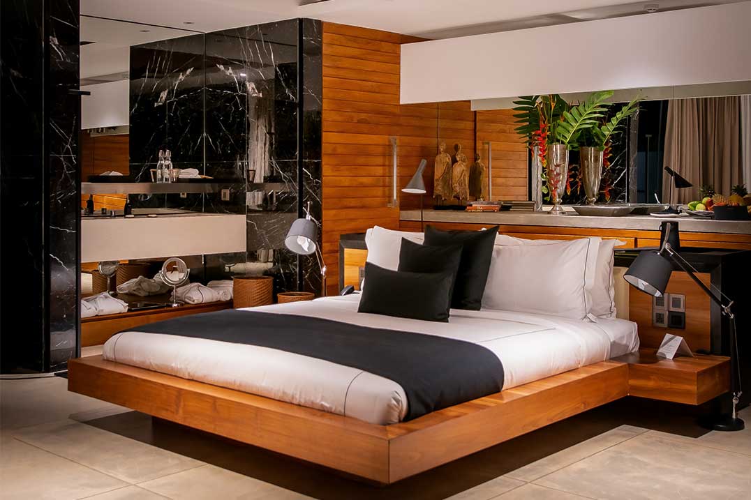 Rooms are fitted with patios overlooking pools, wardrobes, and kettles. Each villa has a private plunge